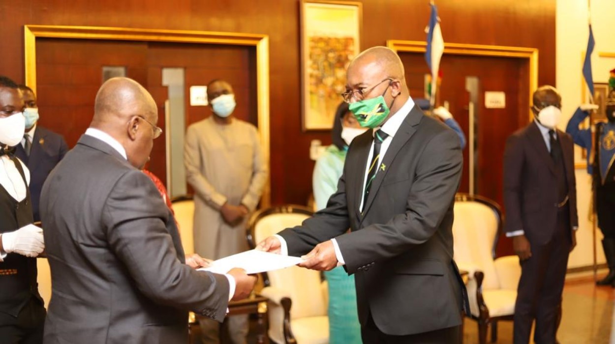 As part of his official duty, H. E. Esmond St. Clair Reid presented his letters of Credence to His Excellency Nana Addo Dankwah Akufo-Addo, the President of Ghana, at the Jubilee House, formally accrediting him as High Commissioner of Jamaica to Ghana. Mr. Reid, who resides in Abuja, Nigeria, during a brief exchange with Ghana’s President, congratulated him on his re-election as the president of Ghana, as well as Ghana’s recent election as member of the United Nation Security Council.